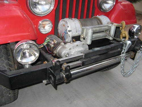 This CJ5 has a Holly fuel injected V8, Duel exhausts, locking hubs and 4 wheel disc brakes. Vehicle comes with six point roll cage that fits inside of the Best Top and also has a nine thousand pound electric wench with remote control. The tolebar is collapsible. It was painted red over the original brown paint. No damage was found. Upholstery is clean with no damage. Runs great, can be driven anywhere!