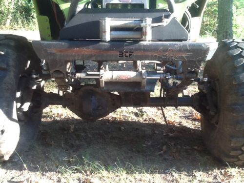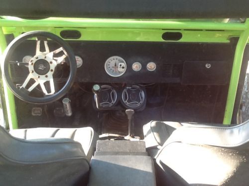 -chevy 350 carb -4 speed manual -Dana 40 Front (detroit locker) -Corporate 14 Rear -42 inch TSL Super swampers -Psc full hydraulic steering -radio and sound system with subwoofer in the tub. Sound system not working properly. Some Water damage but can be repaired. Needs new radio. -aftermarket steering wheel, corbeau seats, seatbelts -10 gallon gasoline fuel cell -tube welded cage -extended wheel base -205 transfer case |