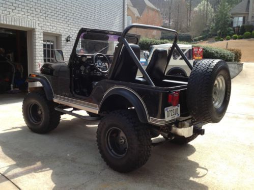Orig. rebuilt 258 straight 6 engine T-176 4 speed transmission 4WD New 4 inch suspension lift kit Newer 33x12.50 tires New fender flares New side mirrors New center console (not pictured) New fuel tank, fuel lines, carburetor, sending unit,etc. New alternator New fuel pump New starter New flywheel New exhaust system Newer battery, belts, hoses,etc. New lockers front and rear New Bestop Supertop hardware (every nut bolt, etc. ) no soft top included New rear seat in box (not pictured) New marine stereo and speakers in box (not pictured) Power steering Front disc brakes Dana 300 transfer case As you can see, thousands and thousands of dollars have been spent to make this Jeep a reliable and super capable on/off road CJ! This Jeep runs and drives great and will do 70 MPH on the interstate all day long. It drives down the road nice and straight too which is a lot to say for a lifted Jeep with big tires! The engine is very strong and does not run hot or smoke. There is a slight oil leak and I'm not sure where its coming from. The 4 wheel drive works well and it does have lockers front and rear. The body is very solid. It still maintains all of its original panels and tub. There are no rust problems o deal with and the 32 year old original paint is still presentable! The front seats are good and there is a new rear seat and center console in the box. You will need to source a soft top and doors but I have every piece of hardware to mount a Bestop Supertop. Overall, this is a really clean original CJ. These Jeeps are getting harder and harder to find in this condition. Don't miss your chance to own this appreciating classic. Many of my auctions end with just a phone call. I can arrange shipping worldwide. 205-276-1918. |