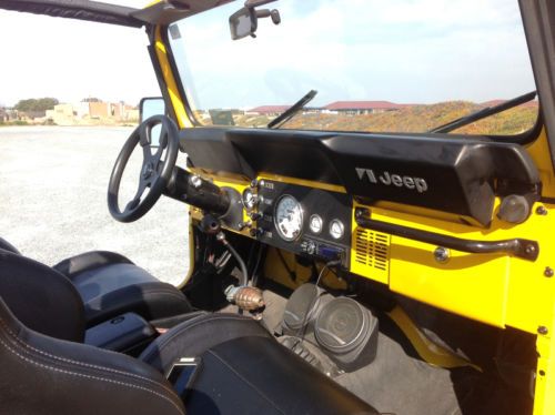 Half Doors (painted to match), Power Disk Brakes on Front- Drums on Rear, Power Steering. Last 500 miles: Brand new DUI distributor, LiveWire wires, and Bosch plugs. I also had the front end totally rebuilt by a local front end specialist in San Diego. I know there are a lot of things I have forgot to list. The bottom line is it is in great condition. It has ZERO rust and lives in the garage. She isn't a show Jeep, but she is an awesome weekend cruiser or even a daily driver. The Bad: There are a few paint chips here and there. I am getting some touch up paint to take care of them. There is a very small ding on the hood (about the size of an pencil eraser), there is a tiny tear on the driver side seat bolster (about a quarter of an inch). The Tach just quit working, I have a new one in hand. This is my third CJ7, and although I did not personally do the entire restoration, it is my favorite. It is by far the best driving CJ I have ever been around. I would keep it forever, but I am moving to the Northeast and I am not going to have room for it. If you have any questions or want any additional pictures please feel free to message me or call/text me at 843-367-8916. |