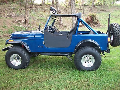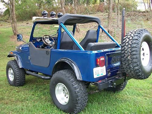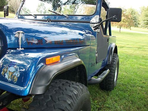 1983 Jeep CJ7, frame-off restoration, AMC 360 bored .030 over (est. 375-400 H.P.), custom cam, Edelbrock performer aluminum intake, Holley truck avenger 650 CFM carb, aircraft/AN fuel lines, Mallory distributor / ignition system, Hooker headers, glass packs (sounds nice), T-4 manual transmission, Centerforce clutch, Dana 300 transfer case, Detroit locker 4.11 gear rear differential, True-Trac 4.11 gears front differential, 4 wheel disc brakes (SS rear wheel disc conversion), single piece axles, tilt steering column, high performance AGR power steering pump, power brakes, aluminum wheels and 35x12.50 tires, complete painless wiring harness, 80 amp alternator upgrade, KC lights, Pioneer CD/stereo, Rockford/Fosgate 4-channel amp, Smithy front and rear bumpers and nerf bars, new seats, new carpet, custom paint, painted in late 2007 after a 5 year restoration, only driven approx. 1450 miles since frame-off restoration, paint is not perfect, but very nice (hardly any perfect paint jobs out there), rear seat has a small hole in bottom center, brake light has come on for some reason, but brakes work fine. have been driving it like this with no problem. I recommend coming to look at it, inspect it, drive it before bidding, I am selling this for a friend of mine as he has never used e-bay to sell a vehicle. It is in my garage and can be inspected and driven if need be. If you have negative or "0" feedback, contact me first or your bid may / will be cancelled. I reserve the right to end auction at any time for any reason even if the reserve has been met. It is for sale locally as well. Payment will be cash on pick up, or bank wire transfer. Cash is easiest, fastest, and prefered method of payment. If bank wire transfer, vehicle will not leave my possesion until I have something in writing from my bank to prove funds have been transfered, this can take up to a week. $300 deposit via pay pal within 24 hours of auction end, balance due within 7 days of auction end. Due to so many scams and non paying bidders, if deposit has not been paid within 24 hours of auction end, it will no longer be available to the winning bidder and may be re-listed or offered to second highest bidder, but the winning bidder is no longer entitled to the vehicle. Sorry about all of this, but there are too many non-paying bidders / scammers and this will not be tolerated. If vehicle is being shipped, it will not leave my possesion until paid for as stated above, buyer is responsible for setting up and paying for shipping, but I will work with shipper best I can to make transaction as smooth as possible. I can be reached thru e-bay for any questions or you can contact me at 606-219-5590. No calls after 10 pm eastern time please. I will be away from computer and may not have any cell service on Wednesday October 9 and part of day Thursday October 10th during the auction. If you can't get in touch with me, leave a message thru e-bay and I will get back to you Thursday evening.