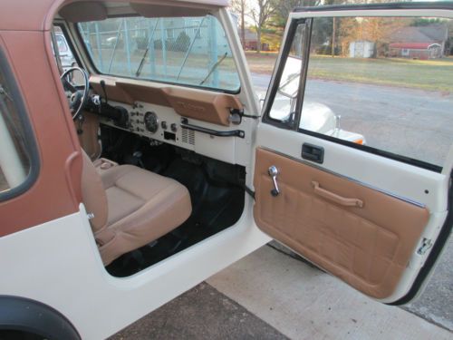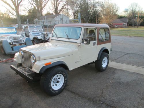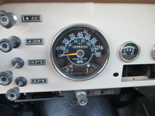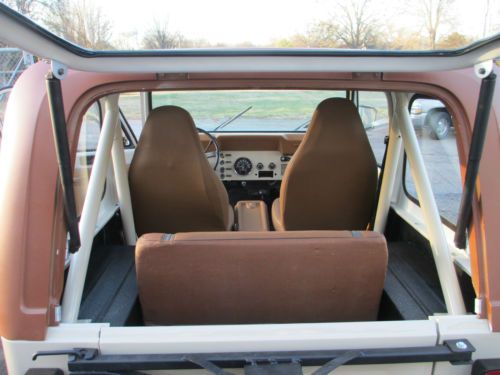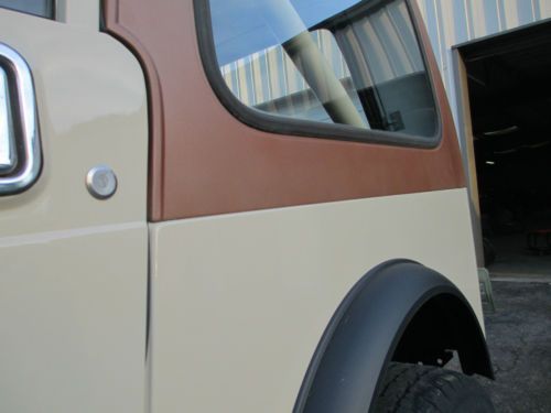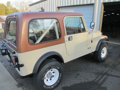 Approximately 123,000 miles Full hard top and full steel doors. Very clean Jeep with new oem tan ppg base/clear paint and spray in liner. Jeep is very solid with all original metal. Hard top was repainted oem nutmeg color. It was also repainted white inside. This Cj runs and drives well for its age, however it has not been fully rebuilt and will not perform like your 2013 Chevy tahoe. New cowl seal, door seals, window scrapes, tail lights, fuel tank/sender, fuel pump, fender flares, side marker lights. All factory gauges are in working condition including fuel, temp, oil, volts and speedo. Heater and cables function correctly. Wipers work. All interior dash lights are working. Included is a nice spare with matching wheel Jeep is being sold in as is where is condition with no warranty expressed or implied. Cash or certified check. Check must clear before I release the Jeep. Don't be shy make an offer. It will sell to the best reasonable offer in the next 5-10 days. |