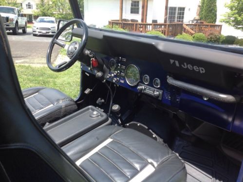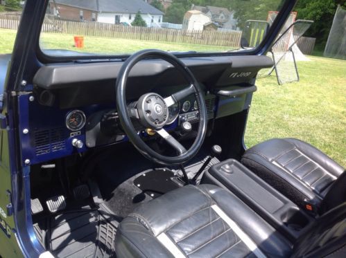 1983 Jeep CJ 7 Laredo. 258Inline 6, motorcraft Carb, 5 speed Trans, manual choke. New 2.5" BDS leaf spring lift . New Rugged Ridge Shackles , and all new poly bushings and new hardware. All New Black Diamond shocks and steering stabilizer. Breaks in great shape. Runs, drives, tracks and stops as it should. Original chrome rims in near perfect cond, with near new 32x10 Pro Comp MT's. Original Laredo seats, in excellent condition ( Very Rare ). There is one small 1/8 " tear in the passenger seat and a small 1/8" sized hole in the back seat. for being original they are amazing. Interior was removed , all metal cleaned, painted and floors rhino lined, Rocker rust was cut out, and new 1/8 steel rocker guards installed. Entire Jeep and dash was painted with original factory Dark Blue metallic. Looks good.Not a show jeep, but good driver quality. It gets lots of attention everywhere I take it. Frame is in excellent cond. New radio and speakers installed. Comes with a New never installed black Best Top top with soft doors. New owner will not be disappointed. Pick up or shipping is buyers responsibility.