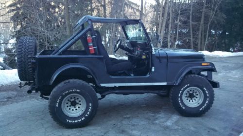 Here is a sweet 1984 Cj7 Fiberglass tub, fenders, hood, 304amc V8, 5speed manual transmission. Starts right up and runs good , all gears work fine. 4 wheel drive works fine. Has a body lift and suspension lift. Aftermarket stearing box support arm was added. Dana 44 gears.