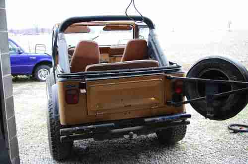 I'm selling my 84 cj-7 jeep owned since new. The jeep has been garaged over 12 years & needs work. It has the factory 4 cyl. with less than 2000 miles on rebuilt motor. A new computer was installed but needs a carburetor. Before parking it I installed a new clutch,less than 500 miles on it. 4-speed & 4 whl diff. has never been tampered with other than fluid changes. The rear end was rebuilt a couple of years before garaged. All the gauges & instrument worked before parked & comes with new heater core. The body tub has rust needs new floor boards & other body rust hole patches. Frame is in good shape no cracks, never been welded on (some surface rust). The front clip is in fair shape, one fender has a fixable dent & the hold has some dings but no rust. The windshield and windshield frame are in good shape. The spare tire gate & tail gate are in good condition. The frame shows minor surface rust but has no cracks & has never been welded on. A custom rear bumper was built when jeep was new. It has BF Goodrich Radial All-Terrain T/A (32x11.50r 15LT) with about 40% tread wear, they have held air for all these years of sitting. The alum. wheels have some clear coat spots of flaking but still clean up nice. The jeep has a new power steering gear box & pump installed a couple years before garaged, but will need some other steering comp. replaced ( tie rod ends & other). One of the front leaf springs will need replaced but other are fine. The front seats are trashed but bases can still be used; the rear seat seat is in good condition (no rips, tears or wear spots). The roll bar pad in good shape The jeep comes w/ a black after market soft top w/its own storage sock & tan bikini top that is all in fair shape. The hardware for the top is in good condition. I have a clear title & think I have covered everything honest. More pictures are available upon request. Buyer responsible for shipping