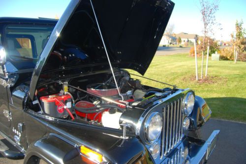 Pristine is the word. Owned by a true car guy. This was a frame off restoration. Frame was sand blasted, acid bathed, primered, and dipped in black epoxy. Hood and fenders are new factory parts and tub is from an 85 CJ7, no rust. Doors and hard top from an 83 CJ7 Larado, no rust. All seals, locks, switches, bolts, screws are new and/or stainless. 4" Skyjacker suspension lift for the 33x12.50 Michelin rubber. Solid axle installed with auburn gear. All bearings and hubs replaced. Motor is a 1995 351 Ford crate motor w/dyno of 310hp. Transmission 79' CJ7 T-18 (ford byproduct). Hydraulic clutch (99 Ford Superduty), DUI ignition, Holly 650 carb, radiator, break lines, steering, shocks,wiring,headlights,tail lights,marker lights,grill,drive shaft, dual flowmaster exhaust,classIII hitch, smitty built nerf bars,Alpine CD with 4/MBQuart speakers, seats are all new. Never been driven in rain, salt or mud. Never off road. It is a show piece with no corners cut! Ready for the car show or just a Sunday drive. Call if more questions 406-388-4802