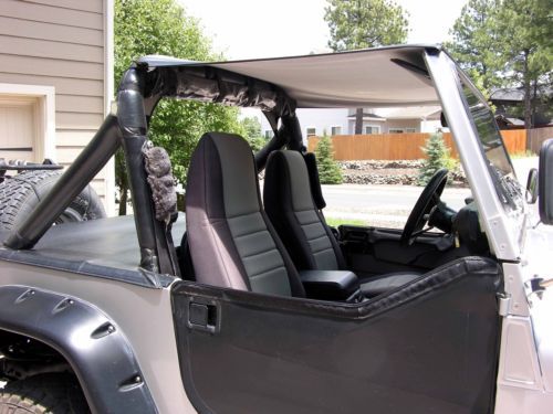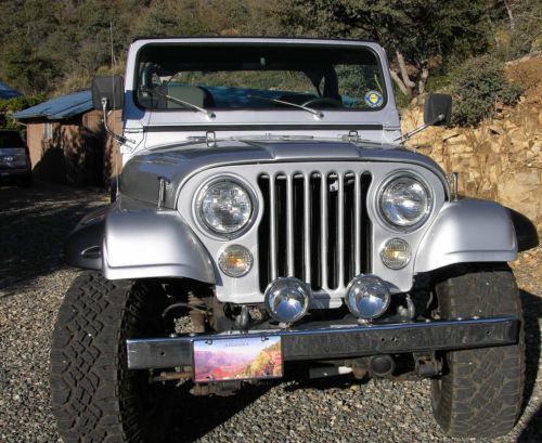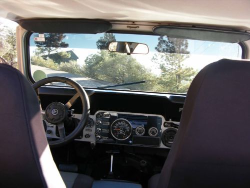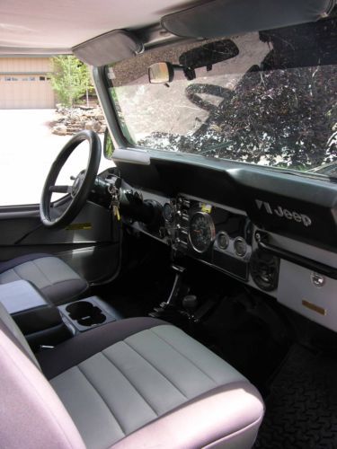 Very clean, well and fully maintained, excellent condition, 1985 CJ-7 Jeep; 129,200 miles (as of posting); 3-speed automatic transmission with shift on console (adapted from original placement on steering column); 6 cylinder stock engine; 2-barrel carburetor; 4x4; Goodyear Wrangler Duratrac tires, 33x12.50 R15LT (approximately 1,000 miles on them); power steering; vacuum-assisted manual brakes; custom rims; bikini top; windjammer; all-weather cover; soft doors (full soft doors, adjustable to half soft doors); hard top and hard doors (hard top missing tailgate inside lens cover; driver's door wind vent missing latch and is sealed shut with silicon; all glass is good; both doors have a normal/typical single stress crack each near window vent ); rear seat; rear seat dust cover; 2-bike rack; 2" body lift kit to accommodate tires; minimal transmission seal drip (likely from side bearing seal). Jeep does not have air conditioning. Jeep has two radio speakers but no radio--radio slot has a delete plate. Ideal for back-road exploration. $15,162 invested in on-frame restoration approximately 5,000 miles/4 years ago, including full paint (including a clear coat) and mechanics: Specifically, new radiator; heater core; all hoses and belts, carburetor and intake manifold gasket; tune-up, bore scoop engine inspection; transmission pan dropped and inspected and new transmission kit installed; battery; radiator and windscreen reservoir bottles; front end ball joints and linkage; fuel pump; all four brakes; all tires, except spare; carpet; all plastic body covers; dash; shift moved to console; console unit; rear seat belts; and front seat covers. Full receipts fully available for inspection. Located in Prescott, AZ and available for inspection prior to bidding. Jeep was purchased and used primarily to host out of town guests in their exploration of Northern Arizona's many natural wonders. |