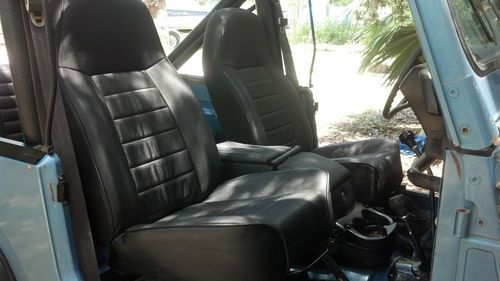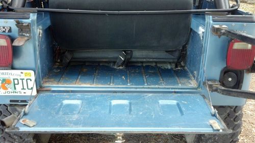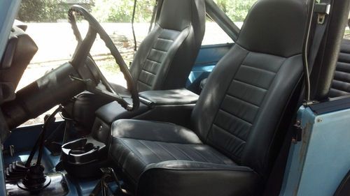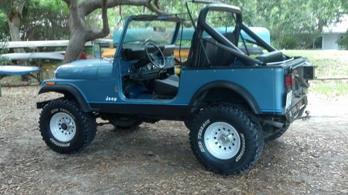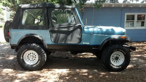 1986 Jeep CJ7 in very good shape. Has 2.5 engine that was rebuilt about 3000 miles ago. Transmission is 4 speed that works well . Has new clutch and master cyl. Transfer case , trans , front and rear end all work well . The transmission and transfer case are oil soaked from engine before rebuild. The only mechanical problem is the carb. The emissions were deleted by p/o so the carb does not work right. I have it adjusted to run a little rich and it does fine. It has new exhaust system and new battery. It has 4 in Superlift leaf springs , pro comp shocks, and 33x 12.50 pro comp mud terrains that are 90 percent. It rides very nice at highway speeds and steering is tight. The top is like new , the seats are like new with no tears. Speedometer stopped working when the exhaust guy burned the cable , but the gas gauge works. The A/C needs recharged and a new knob. Compressor works. The paint is original and needs re painted . There is only surface rust in a couple of spots, but there is no rust holes or repair needed. There are a couple of small dents I took pictures of, but minor. You could drive this jeep anywhere . I have the clear title. If you have any questions please ask.