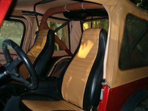 1986 Jeep CJ7, 5 speed manual transmission with new clutch After market AC with cold air, cd player with overhead sound bar/ light, Jasper built in-line 6 motor. Weber carb upgrade.Extra bikini top and fiberglass half doors. Runs great and gets 17 mpg on the highway. Last year of the CJ7's.