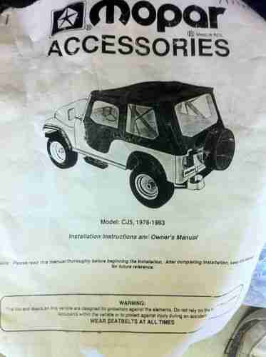 Up for sale is my 1979 CJ5 Jeep. Has the AMC 304 V-8. 3 sp manual transmisson on the floor. Great mechanical condition. Doesn't smoke, use any oil. Good running little CJ. It comes with top, full doors, and Bows, all of which are new from Mopar. Fronts seats are like new, where the rear seat needs replaced. Heat doesn't work in it and I have no reason why, don't know if its a fuse or what. All of the guages work besides the fuel guage. I don't know the reason for that either. This CJ5 has a fiberglass body. If you know anything about jeeps, jeeps are pretty simple vehicles. Over all this is a great mechanical jeep. Runs up the road smooth. When you get it up to about 70 mph it does has a shake. Wouldn't be scared to drive this jeep anywhere. Also comes with a new 1K cranking amps battery. I just don't have the time to enjoy this Jeep anymore. Needs to go to someone that will enjoy it.
