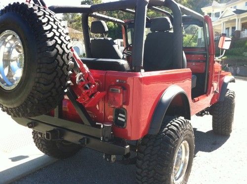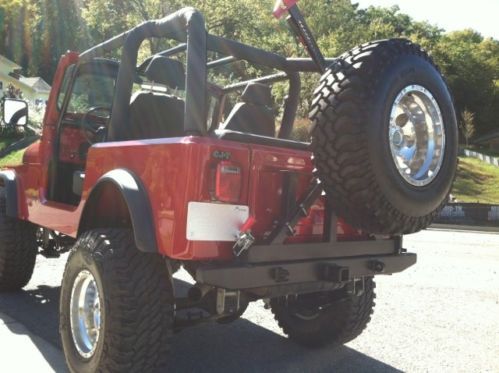 Up for sale is my Jeep CJ7 Laredo. This Jeep has recently been restored. It is 100% rust free. It has a Corvette LS1 motor, 5-speed AX15 trans., Dana 300 4:1 transfer case, power steering, power brakes, tilt column, clock, and tachometer. Additional features include a Superwinch 9,000 lb. winch with synthetic rope, full family style roll cage for additional safety, and a new stereo with iPod connector. New 4.5 " Rubicon Express lift kit. 33" tires have less than 1,000 miles on them. This Jeep is an absolute blast to drive. Plenty of power when you need it but it can also cruise around town comfortably as well. The Vehicle is a no-excuse, needs nothing Jeep. If you're looking for a great looking, unique, fun to own, worry free Jeep..... Look no further. It would cost more than double to duplicate this Jeep. I've owned it for several years and recently had it restored. It's time to let it go to a new owner. Thanks for looking. Send me a message if you have any questions. |