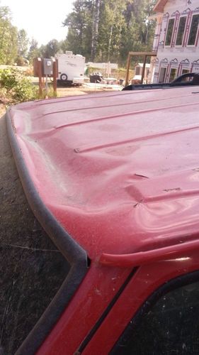 Vehicle has been in a rollover. Tipped over and landed on roof. Large dent spanning the hood above windshield. Windshield very cracked. Some body trim has been lost. Needs a lot of body work, along with exhaust, battery, etc.