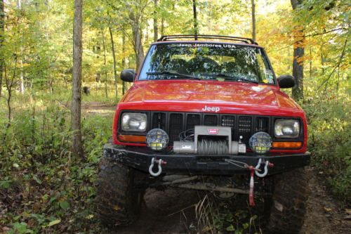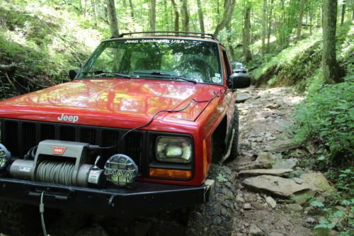 If you know why a TJ is lengthened then you know why a 2 door XJ has got the perfect wheel base. You also know that 2 door XJs with a 5 speed manual transmissions are very rare. You also know that finding a good one is very hard to find if at all. If you find one that can be both driven on the highway at 75 MPH and take on the hard trails, well you found it. Body: No rust anywhere. Floors are like new. Good paint with good looking dents. It's a trail rig, has lots of dents. All glass is there and the body has no cracks. The body is structurally sound. Interior: Comfortable. Heater system works with cold AC. Engine: 4.0 with 113,000 on it. Very strong engine and returns good fuel mileage for a jeep. Does not use oil. Maintains slightly under 210 degree temperature. Has power steering pump cooler. Off Road: Tomken 6.5 inch lift, adjustable control arms (very stout arms), adjustable track bar and JKS sway bar disconnects. Tom Woods driveshaft and slip yoke eliminator. Detroit locker in rear and Track Lock Diff in front. 4.56 superior gears. Rusty's heavy duty steering bar, Old Man Emu front shocks, Warn winch and bumper. Hanson Offroad rear bumper. 35 Inch Goodrich KM2 tires with lots of thread left. Tires have been perfectly balanced and there is NO shake driving this XJ. Wheels are only a year old. Maintenance: Starting with newest maintenance. Maintenance was done as needed or to keep jeep in perfect condition. At 112,087 replaced drivers side wheel hub assembly. At 111,291 did complete brake job. Replaced rotors and pads with calipers in front and drums and brake pad in rear. At 111,000 replaced spark plugs in engine. Coolant was flushed and changed. At 109,000 replaced upper and lower ball joints and tie rod ends. Alignment done. At 104,000 front and rear axels were overhauled. All u-joints were replaced. Clutch was replaced. Radiator, water pump and all hoses were replaced. Oil changes are done as needed and diffs and transfer case have Mopar synthetic lube in them. Jeep can be parked on the driveway because it does not leak. It needs nothing to take it away, all maintenance is done. The BAD: Signal light lever does not return to center. When going up a long steep hill the blend doors in the heater will go to heat because the vacuum box is gone. But it returns to vent after the hill. These never bothered me. I will be glad to answer all questions. Yes, it is worth the asking price. It's rare!