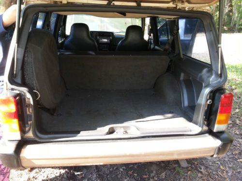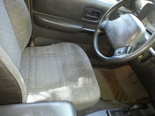 Auction is for a 1999 jeep cherokee sport 4x4 with a 4.0 engine and auto transmission. There is no under body rust that I could spot, even in the usual problem areas. According to the previous owner it had a crate motor put in at 168k miles. A few days ago it rolled 200k and now it sits at 200,100 miles. That would put about 32k on the motor. Normally I'd be skeptical, but if you know jeeps, you know the light clicking lifter sound that they all have. This does NOT have that so I'm actually a believer that this is a new engine, however, don't take this for fact. I'm not sure how much it's lifted if any, however it is fitting 31x10.50x15's without rubbing and that is something I have never been able to manage on any of my other stock Cherokee's.The tires have minor cupping which causes a very slight vibration at certain speeds. (Double checked that this was the cause by driving with my my friend's tires on it. No vibration at all)The previous owner had this since 06' I believe (could be wrong) and they told me they didn't know if the 4x4 worked or not because they had never even tried to engage it. I tried it the other day just to make sure it worked and it engaged in both high and low perfectly. The drivers window does not work. It needs a regulator and motor. It has the window wedged up currently. A/C and heat both work great. Other than the driver window, the power windows all work perfectly, as well as door locks and radio. It has an aftermarket cd player that I'm not a huge fan of. It has an aux. hookup in the back (great design eh?) and is wired for subs. The only issues are the window, a crack in the windshield (only reason I haven't fixed it is that it doesn't obstruct drivers view according to inspection station so it's pointless to fix it), needs rear hatch shocks (they seem to hold up on warm days but not on cold days), and the headliner has lots of pins holding it up. Other than that, it's in good shape. It has two small rips in the drivers seat. one on the side of the seat bottom, other on the ride side of the back rest. other than that they are in pretty good shape. Jeep also has roof racks. Jeep has never been used to tow anything and still doesn't have a hitch installed.