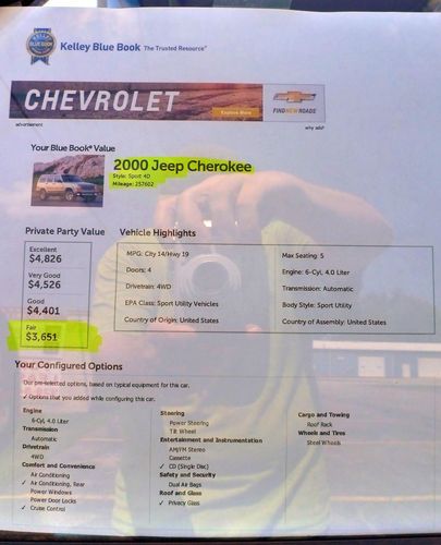 2000 jeep cherokee classic sport utility 4-door 4.0l