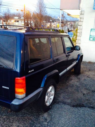 2000 Jeep Cherokee Sport, blue, 105,000 miles, Michelin tires, sunroof, body in very good shape, no accidents. Great station car or can be used for long trips, AM/FM cassette with slot for 1CD as well as rear CD changer. Full spare with full tread. Air conditioning, front and rear defrosters, rear windshield wiper.