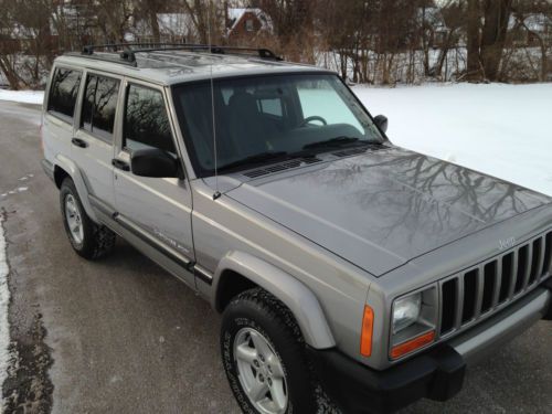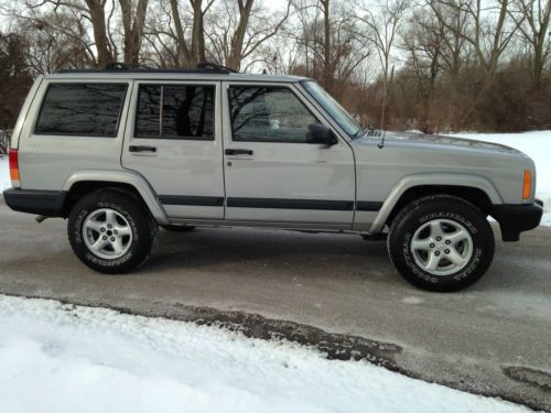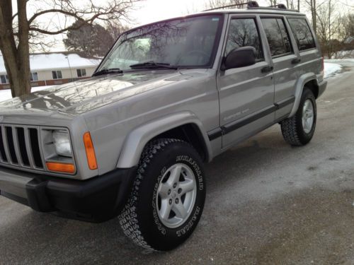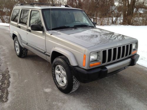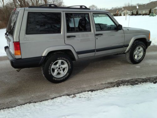 2000 JEEP CHEROKEE SPORT 4.0 INLINE 6-CYLINDER ONLY 139,421 ADULT DRIVEN MILES 4-WHEEL DRIVE "4X4" AUTOMATIC TRANSMISSION POWER WINDOWS, POWER DOOR LOCKS, TILT, CRUISE CONTROL, PREMIUM ALLOY WHEELS, FACTORY CD-PLAYER, AND MORE!! I WILL BREAK DOWN THE CONDITION OF THIS SUPER CLEAN, BOX-JEEP INTO (3) CATEGORIES, EXTERIOR, INTERIOR AND DRIVELINE TO EXPLAIN IN DETAIL AND ANSWER AS MANY QUESTIONS AS POSSIBLE BEFOREHAND, SO HERE GOES...... EXTERIOR: "SILVERSTONE METALLIC" IS A GREAT COLOR, AND MAKES A BOX JEEP LOOK CLASSY! AS THE PICTURES SHOW, THIS ONE IS EXTREMELY NICE AND CLEAN, GIVEN THE AGE/MILES ! THE PAINT STILL HOLDS ITS ORIGINAL SHINE, AND THIS JEEP HAS AWESOME EYE APPEAL! THERE ARE NO MAJOR DENTS, DINGS OR BLEMISHES ON THE BODY OF THE JEEP WHATSOEVER, (SEE PICS) UNDERNEATH LOOKS GREAT. THE BLACK PLASTIC TRIM "NOTORIOUS FOR FADING AND LOOKING CHALKY" I JUST HAD THEM PAINTED, AND THEY LOOK GREAT! THE GOODYEAR WRANGLER TIRES (SIZE 235/75/15) ARE ALL MATCHING AND HAVE 70% PLUS TREAD-LIFE REMAINING, THE PREMIUM ALLOY WHEELS LOOK GREAT, JUST A GOOD CLEAN, HONEST BOX JEEP. BE SURE TO CLICK THE MANY PICS, I AM PROUD OF THIS ONE!-JOSH
