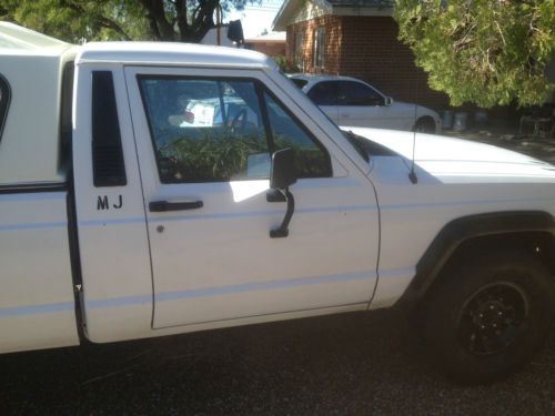 Up for sale is an 1988 Jeep Comanche pickup. it currently has 137,000 original miles and is a rust free Arizona truck. This truck has been my daily driver for the past 18 months and has never let me down. I am selling the truck due to my family growing. Honestly if I didn't have to sell I wouldn't. We will start with the negatives, The rear bumper has been slightly bent as seen in the picture. There i a 1/2 inch crack at the top of the windshield. There are some parts of the truck where a little paint has been chipped off. The interior could use a good cleaning and the only rip in the seat is on the driver side bottom of the seat. The truck has some minor blowby as is typical with the 4.0 engine. Now for the new parts list( all within the last year). New Fan clutch,Idler pulley, Radiator, Coolant Bottle, oil pan gasket, rear main seal, exhaust and intake gasket, alternator, shocks, track bar, CPS, fuel pump, plugs/wires,cap/rotor,CAT converter. The tires are 31" and have about half tread. It also has the factory bed liner that says "Comanche". This truck will be sold at No Reserve so dont miss this one. Any ?s please ask. Thank you.