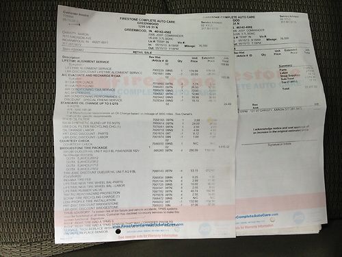 I am selling a used but in GREAT condition Jeep. This jeep has been extremely well maintained and I have current maintenance records that I have included a picture of. You can zoom in to see everything that was just done to this Jeep within the last month. I have just purchased a Ford Raptor so I am selling my Jeep. The Jeep has all windows tinted with dark tint. The front window also has an eyebrow tint. It also has custom 20" rims with low pro tires. The tires were just replaced which were over $1,000 WITH a discount from my friend who is the manager at Firestone. These tires are less than a month old and are rated at 50,000K so you shouldn't have to replace these for years, if ever. I also had them change the oil and air filter, do a complete check, charge the air conditioning and flush the coolant while it was there. This is a beautiful jeep and gets MANY MANY looks when you are driving down the road. There is absolutely no mechanical errors at all with this Jeep. There are a 4 very minor astetic things that most people will never notice that I have included pictures of at the end. The driver door handle plastic is cracked but still works completely fine. A vent in the BACK of the jeep is missing the slides and there is a scratch on the passanger side rear fender that I'm sure that can be buffed out. You can barely see the scratch from 10 feet away, but I got a closeup for you so you know. Last thing, there are some scratches on a few of the rims from the previous owner hitting a few curbs. I have a friend that owns a mechanic shop and can get the rims fixed, re-finished and powder coated and color you want for $150. (I would stick with black though, either gloss or matte, it looks so nice) Besides those very minor details, it is perfect. I just had the inside completely detailed over a month ago, so it looks brand new on the inside. NON SMOKING vehicle. If you would like any more pictures or videos of it running or something, I would be more than happy to provide them. Whoever wins this car will have a real eye turner and pull a lot of attention.