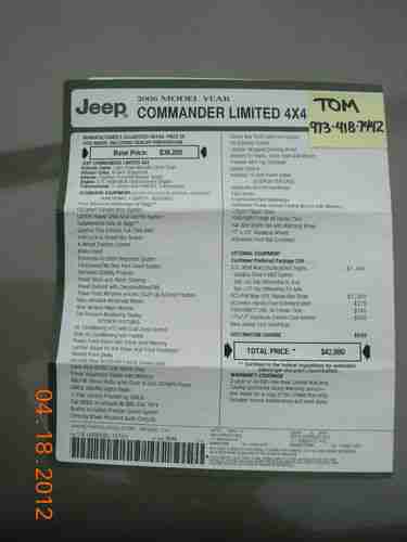 We finance 2006 jeep commander 4wd 3.7l v6 warranty pwrlocks pwrsts 6cd prkasst(US $9,000.00)