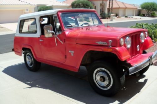 Selling a Mechanically nice running 43 year old Jeepster Commando. 4 wheel drive Lockouts, Hi-Lo all in working condition. Original seats included along with some new running lights and a few parts as pictured. V-6 with standard 3-speed transmission. Some rust as pictured but still can do those desert runs or winter trails for the outdoorsman. A decent older Jeepster that is dependable and you won't break the bank. These Jeepsters starting to get attention of the purists and collectors along with the person looking for an off-road vehicle to enjoy on weekends that they remembered in the 70's. 5 Day session.