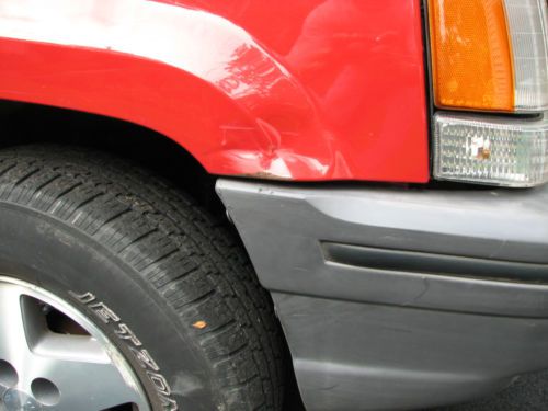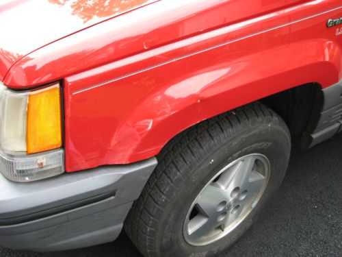 1995 Jeep Grand Cherokee Laredo: Runs well. This was my fathers Jeep. In the past 5 years it has gotten a new AC compressor, Oil Pump, and crank sensor. Tires are about 50%. This year it has gotten new brakes and an Battery. Runs will starts up no problems. There are a few dents on the front of each fender and the hood. You can see them on the picture. He accidently hit a cabinet in his garage with lawn chairs in it. Therefor the Plastic Grill, Bumper cover, and driver side turn signal had to be replaced. There was no structural damage, just trim and plastic. I know of no issues at this time. Since it is a older vehicle the Jeep is sold as is. If you have any questions or would like to see the car please email me and I will be happy to answer your questions |