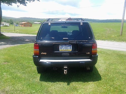You are looking at a 1997 Jeep Grand Cherokee in great running condition. Only 121,000 miles. AWD. V-8. Black. Just inspected in May 2013. Power windows, power heated seats, power locks, leather interior, CD, radio, AC/Heat. Tires have good tread. Towing package. Sunroof is tempermental so we leave it shut. No leaks. Only reason for selling is we purchased economy car for long work travel. Will make someone a great vehicle. Questions 570-673-3320. Thanks for looking. This Jeep is for sale locally. If sells, we will end auction early.