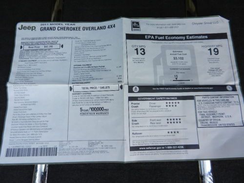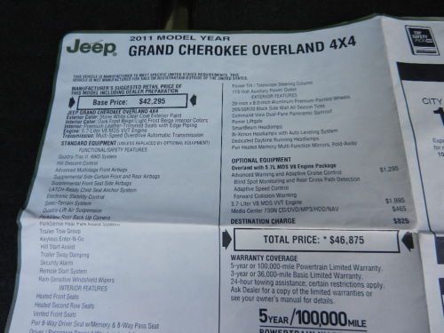I am offering this very nice 2011 Jeep Grand Cherokee Overland that I have been driving for the last six months. I rides and drives great. The original sticker price was $46,875, plus it has aftermarket DVD! This Jeep also has my favorite option, Keyless Go and hot and cold seats. It also has Navigation, Back Up Camera, Panoramic Roof, Wood Wheel, Heated Wheel and many other options to numerous to mention. There is curb rash on right rear wheel that I showed in the pictures. There are people that fix this type of curb rash, usually for $125-$150 and hopefully you can have that done if it bothers you. You can contact me at 215-669-7161 my name is Tony. |
