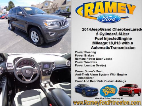 Look at this sweet 2014 Jeep Grand Cherokee Laredo, call today to schedule a test drive! Look at all the options that come standard on this one! Power Door Locks. Power Windows. With a power seat in this vehicle every driver rides in comfort. It also has a rear spoiler! Stay cool on those long summer road trips. Just switch the A/C on and escape the heat! With Tilt Steering you can adjust the Wheel to a position you like! Got a long road trip planned Cruise Control can help keep your speed under control! Also included on this vehicle is a Rear Defroster!! Safely change the Volume and Channel on the radio on this ride....its got Steering Wheel Audio Controls!!! It makes driving this one that much more enjoyable!! Safety First....Airbags save lives and this one has a Drivers Airbag. No more arguing over the temperature in your car! You can both pick with the Passenger Temperature Control! Comfortable Front Bucket Seats always make the drive go by quicker. The Cloth Interior on this car looks good......come by and check it out yourself! When having to slow down in inclement weather don't worry you have ABS to stop you safely. This vehicle also has Privacy Glass. Visit Ramey Ford Princeton in Princeton today and drive this one for yourself! Call now to get your best price! We will not be under sold. All inventory is inspected and detailed to the highest standards. Visit our website at www.rameycars.com!!