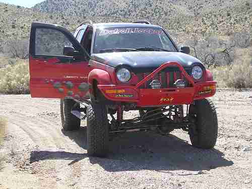 - 2003 SEMA SHOW. Jeep Liberty built for Detriot Locker Sema Show and other shows, also featured in many 4x4 Magazines.I will give them to the buyer. 2. Atlas II 5 transfer case 3. Currie Rock Jock Dana 60 axles, with4:56 gears, Electra Trac locker front with Warn hubs, rear axle has full time Detriot Locker with floater kit. 4. Power streering by AGR with Rock Ram. 5. SwayAWay coil over shocks, Custom built supension 4 link in the rear axle, 3 link on the front axle . 14" lift 6. Currie Anti -Sway - Bar 7. 5 Trail Beadlock Wheels, With 2 new Goodyear 33" Wranglers on the rear and 2 BFG TA's on the front, about 40% left , fair spare tire 8.Wilwood disc brakes with new pads 9. Built in roll cage,Warn off road lights, CB radio, Pyhton Alarm system . 10. 20lb. nitgren with 25' hose for quick air ups 11. Custom black over stock red paint and yellow pin striping . 12.Custom leather seats by KAZTKIN 13. There A RE A FEW ISSUES: .horn is not hooked up ,Sun Roof iis disconnected becaause of short ,cracked front windshield ,parking brakes disconneted, air bags not hooked due to custom bumpers, speedometer not working correctly all the time. I think the high pressure hose on the power steeering might be leaking. 14.This vehicle has been driven in the desert , so there is some desert pinstriping and some chipped paint, mostly around the wheel wells and bumpers. 15. I have tried to list every thing as best as possible . This vechile is not a freeway flyer, recommended speed is 55mph . Vehicle should be trailer home. Vehicle is located about 60 miles east of Bakersfield, CA 16.Call me if you have questions,Mickey-720-427-8889- 17. $500.00 DEPOSIT BY PAY PAL. -CASH UPON PICK UP. . .