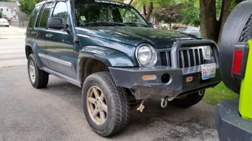 Up for sale is my daughters 2005 Jeep Liberty. It is in great operating condition, and has many parts recently replaced. It has a 3" Frankenlift ($1200+) and a recent ARB rock bumper ($1600). It has very little rust, one corner of a door has surface rust (see pics). No holes anywhere. Paint shines well with some trail scratches. See the trail rubs in the pics along the windows, near the antenna, and the drivers side rear door handle. Nothing affects the operation of the vehicle in any way. Will need tire pressure sensors if you care about that system. Passes Illinois emissions with flying colors. Makes a great daily driver that can go anywhere offroad. Its a "limited" edition with leather, moonroof, full and part time 4wd. Recent axle shafts, rear driveshaft, ball joints, and wheel bearings. Battery is less then 12 months old. Interior in great shape, 2 cracks in the drivers side leather seat - see closeup pics, and previous owner spilled some latex paint in the back. Aftermarket radio, and slush mats. Have original factory bumper to go with it - nothing wrong with it - my daughter wanted it to look "tougher". She bought a Wrangler, so we are selling this one. Have a clear title of course. KBB in only fair condition (and this is way better then fair for sure), and not considering the lift is $6724. Priced to move fast! |