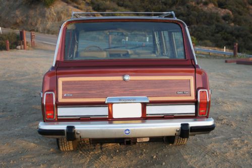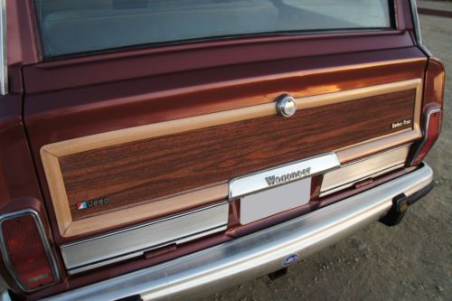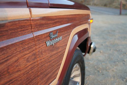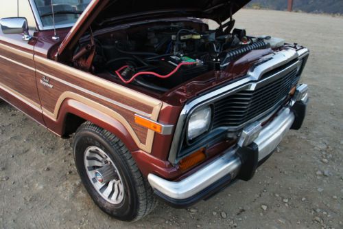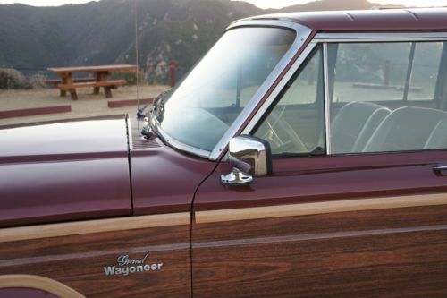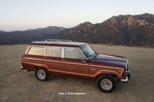 For Sale by private owner is a breathtaking RESTORED 1984 Jeep Grand Wagoneer. ORIGINAL CALIFORNIA CAR. Finished in special order Garnet Red Metallic with a Light Parchment leather and corduroy interior. Featuring sleek and attractive Cherry Oak side panels. This is the original factory color combination and trim level. All numbers matching. Optional AMC 360 cubic inch 8 cylinder engine. Rebuilt automatic transmission. Full towing package. Power everything. Garage kept every night. This Jeep starts right up every time and runs extremely well. Super smooth, quiet and powerful. The transmission shifts flawlessly as well. Steering is tight and accurate, suspension feels great and the brakes stop the car promptly and safely. A real pleasure to drive, own and look at!
