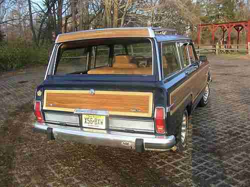 Thanks for interest in my 1986 Grand Wagoneer. This is a solid Jeep- ready to go. Currently inspected in NJ- good until 2014. The Grand Wagoneer runs & shifts well, 4x4 works- has no serious mechanical problems. Frame is solid- no damage at the fuel tank as is common- has a more recent fuel tank holder (see picture). What you will be purchasing is a good solid Jeep- get you were you need to go and through snow with ease. Not a perfect show piece but solid and reliable. Jeep still looks good- has the nice options- wind-deflectors on windows and the rear wind spoiler. Has the usual misc. problems typical with these Jeeps. Is rusted under the floors in back seat area- could be repaired or just drive as it is. Body has only a small amount of visible rust- really nice looking over-all for a 26 year old Jeep (Can be registered as a classic at this point). Not all power locks work every time, rear window stick going up but works. Cruise not working. Nuetral switch quirky- sometimes have to start in nuetral- and simple repair to replace the switch though. Has a leak in the AC hose- I will include the needed hose for the repair. Interior lights not quite right. I am sure you will find some other minor issues but over-all this is a very usable Jeep at a great price. Yes I could fix all the little problems but then the price of Jeep would be higher- so you get a great price and you put a little elbow grease into it and it gets even better. All power windows working. This is one I have been driving for about 6 months. If you check my e-bay store you will see I specialize in Wagoneers and know them well. There are a lot of junky Jeeps out there. This is not one of them. You will be able to get in and drive- no big surprises. I have already rebuilt the carb (I have 30 years experience working for Jeep dealers). Starts up cold and goes. New plugs, some exhaust work done, new rear axle bearing, valve cover gasket, and some other recent upgrades. Jeep had a sunroof which leaked and did not work- so I removed it and installed the correct headliner and replaced the roof panel. Not really not noticeable unless you are above the Jeep- (see picture). I aso have many Wagoneer parts in my e-bay store and can help with your future needs. I will also give buyer a $200 credit toward items in my ebay store if closing auction price is above $2800. I can also service your Jeep for you if you need future repairs as I have a auto repair business and still service the Grand Wagoneers. I have done work here locally for east coast customers of Wagonmaster of Texas- I do know these vehicles well. I own, drive, and love Grand Wagoneers so we can swap stories!! Check out the pictures. Has some agresive tires- great for snow- still have some life (do make a little noise going down road with the heavy tread). Inside is decent-seats not ripped up- had a new carpet installed in cargo area. Nice plus is it has a modern CD player which works. If you do not want to spend a lot of money and want a dependable Grand Wagoneer that still will get some attrention- this is it.