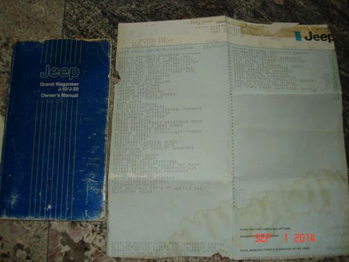 This JEEP GRAND WAGONEER is ALL ORIGINAL. NEVER IN AN ACCIDENT!!! I have the ORIGINAL build sheet and ORIGINAL owners manual. Has all the upgrades, power windows, power door locks, sunroof, leather interior. The original owner was a horse lady. Good condition, ready for restoration. Second owner. Clear title. Runs but recently started smoking. A/c is cold and works great. Needs paint, carpet and headliner, engine restoration. No accidents. One small dent from someone in a parking lot (see pic). Auction winner to pick-up or arrange shipping. May be able to deliver within reasonable distance if purchaser pays additional costs,