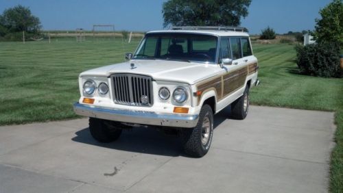 There is no rust (other that a rock chip here and there) Frame is great, body is VERY good...you'd be hard pressed to find a nicer original Wagoneer and not expect to pay 15K+...reserve is way lower than that. This thing runs great, drives great (goes 75 down the interstate no problem) 4WD works flawlessly. Just an all around nice Jeep. The bad.....Rear defrost doesn't work. Rear window works, but goes down slow. Right rear door window works intermittently. Right front door lock doesn't push the lock up all the way. AC works great, but needs charged in the spring (has a slow leak) Rear cargo carpet is not the best (see pictures) Has some slow leaks that leaves spots on the floor of the garage, but doesn't need added to between oil changes. The wood grain isn't perfect (has a couple spots mainly on the drivers door that is thin) The good....4" lift with new BFG All Terrains (31 x 10.5 x 15) New last fall....water pump, fuel pump, oil pump, timing chain and gears, distributor cap/ rotor, radiator, ALL belts and hoses, alternator, fuel filter, K & N air filter, just got the carb rebuilt by a local professional shop. Has original rear air dam... Interior is in GREAT shape, no rips in the seats or carpet (other than the cargo area) Headliner is PERFECT!!!! New Alpine car stereo with blue tooth...new rear speakers....Gladiator front end!!! What more needs said!!!!!! This is our second vehicle, so I had to make sure it was very reliable for my wife and kids to take off in if I had the other vehicle. I try to be as honest as possible...If you have ANY questions, please ask. CASH OR CASHIERS CHECK ONLY!!!!!!!!!!!!! |
