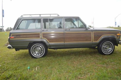 1990 Jeep Grand Wagoneer. Grey with tan interior. 78,740 actual miles. 5.9 Liter, V-8 (360 CID) 2-barrel Carburetor. This " Woody" is a classic and nearly perfect condition. There is no rust anywhere. Undercarriage is clean. ( I have those pictures if you eed them).