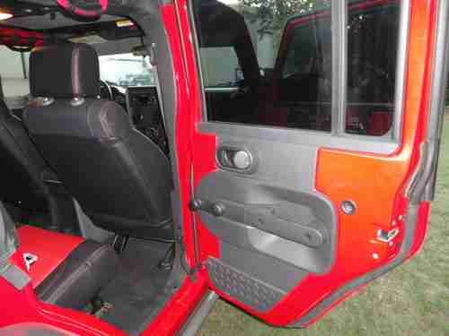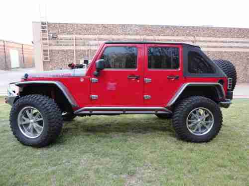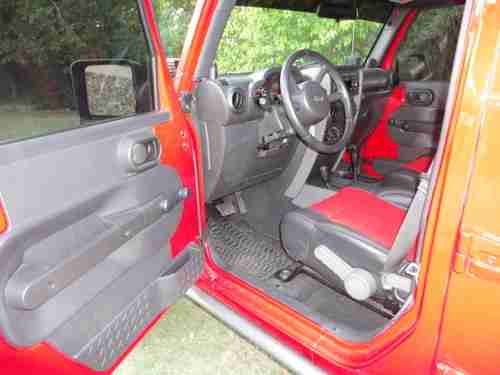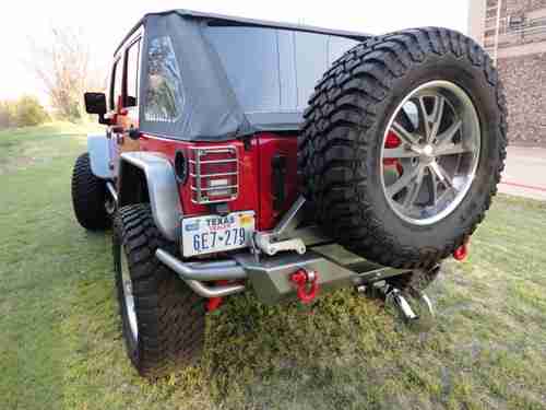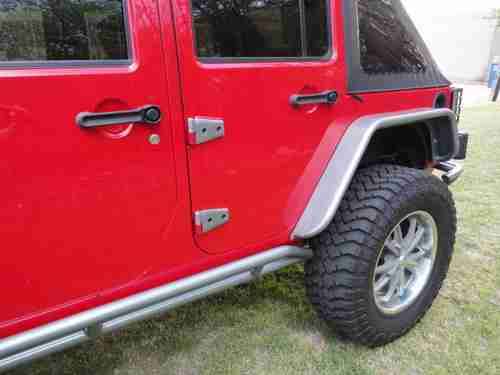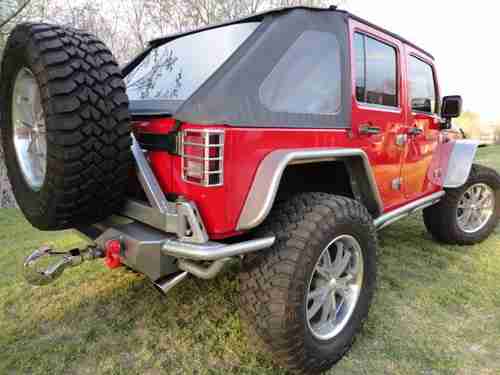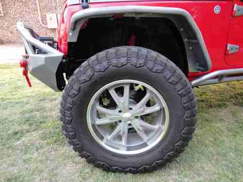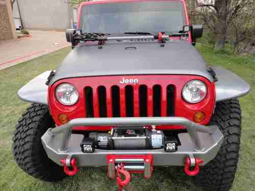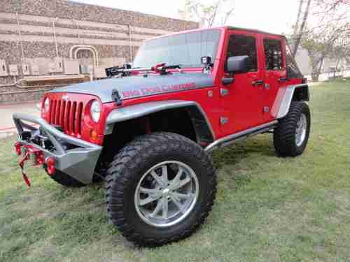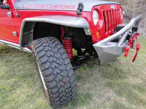 2007 Jeep Wrangler Unlimited 4x4, 96 K miles, 410 gears,auto. trans., the Jeep is a 1 owner, Clean Carfax, non-smoker. We at Big Dog Customs have gone thru the Jeep and replaced many parts and added many many NEW extras - It has 37" mud tires on 20"x9.5" wheels, 2 1/2 in ProComp lift kit with Bilstien shooks, Metal fenders, Smittybilt bumpers and side rails, Smittybilt X2O 8000 winch, New Trektop, New Custom leather seats, cool-air intake , Super chip programer , , 4 LED lights, High-Lift jack, in-dash CD player and All the Red & Grey parts were Custom Powdercoated, just wrapped the hood area with 3M carbon fiber wrap. Also other things done to bring it up to date.
