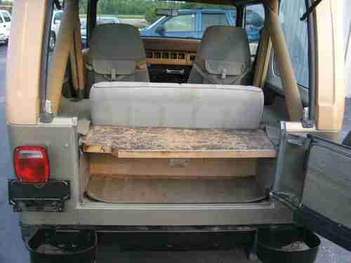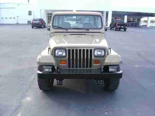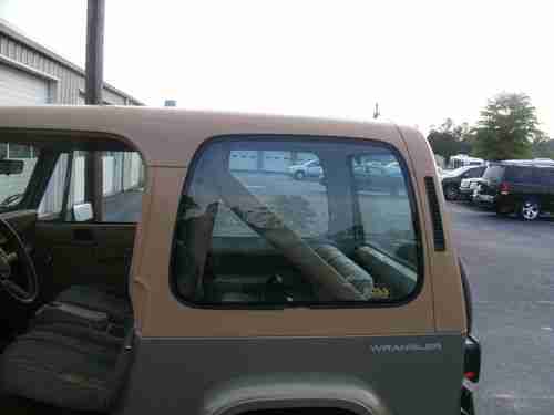 1988 JEEP WRANGLER SAHARA 4WD, 6CYL, FACTORY POLISHED JEEP WHEELS, NEW PAINT ON BODY, AND HARD TOP HAS BEEN FRESHLY PAINTED, NO RUST, RUNS GREAT, NEW GAS TANK, AM/FM PIONEER CD PLAYER, NEW BATTERY, NEW WIPER BLADES, NEW LIFTGATE SHOCKS, NEW WEATHER STRIPS AROUND SIDE GLASSES, TIRES IN GOOD SHAPE A LITTLE AGGRESSIVE TREAD PATTERN SO HAVE A LITTLE BIT OF ROAD NOISE, INTERIOR IS VERY CLEAN ONLY ONE TEAR IN THE DRIVERS SEAT (SEE PICS) THIS JEEP RUNS GREAT, 4WD WORKS GREAT, VERY VERY CLEAN JEEP ESPECIALLY TO BE A 1988 MODEL, SUMMERTIME'S COMING TAKE THE TOP OFF AND RIDE. PLEASE FEEL FREE TO EMAIL WITH ANY QUESTIONS ABOUT THIS VEHICLE, THIS REALLY IS A NICE JEEP SO BID WITH CONFIDENCE!!!!!! THANKS FOR LOOKING AND HAPPY BIDDING!!!!!!