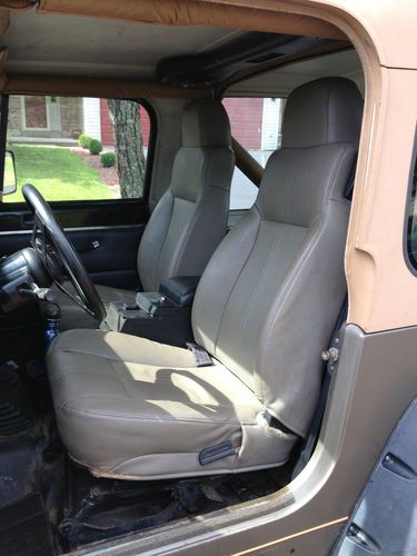 New smitty built bumber 4 new 2.5 inch lift and a 2 inch body lift. All new break lines. New front breaks and rotors with and one nw caliper. Motor has 75k with a brand new weber carborator. Beefed pumpkins and axles from a 91 jeep. New ax15 transmission with less than a thousand miles. New cluch and reserfaced flywheel. Motor is a 4.2 straight 6. Interior is two new gray seats and black interior. New steeringwheel and locking center council. Boss touch screen radio with kenwood speakers. Has a hard top soft top hard doors and half doors