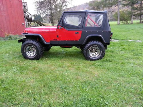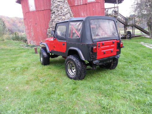 Up for sale is my 89 YJ Wrangler. It has a 5.3 from a 2001 Silverado. The motor has a little over 100k on it and it was from a friends truck who owned it since almost new. The motor runs great and fires up every time with out issue. The wiring harness was striped down and all the excess wires removed. The ECM was sent out and reprogrammed to the tire size and to do away with the unneeded controls i.e. the egr, rear O2, ect. The ecm is mounted under the dash inside the cab and it does have an OBD2 port to connect to it. The trans came from the same truck and was fully rebuilt including the torque converter and pump. The trans has around 2k on it. The transfer case is a hybrid NP-235 (front half from a S10 and rear half from a wrangler). The case has a SYE from rough country and custom drive shafts made at Frey the wheel man in Syracuse. The rear end is a ford 8.8 from an explorer with 4.10 gears and limited slip diff. The spring perches were cut and welded to set the correct pinion angle. Rear end also has disk brakes. The front axle had the shafts from a 95 with the bigger u-joints. Front axle also has a posi lock set up to do away with the vacuum system. The front axle has had new ball joints, axle joints, bearings, tie rods, ect with in the last year. I set the toe on it but it could use a good alignment. The lift is a combo of 2.5" springs and 2" shackles. The radiator is a aftermarket aluminum built for the 5.3 motor. It has a center console from an S10 blazer to allow for the shiftier for the 4l60e. The speedometer, volt, fuel, and oil gauge in the dash work and the coolant temp is aftermarket. The tach has a wire run for it but would need an aftermarket tach to work off the ecm. The Jeep was a manual and I never removed the clutch pedal or clutch cylinder in case I ever wanted to go with a manual trans. It has true dual exhaust with Magnaflow mufflers. It sounds good with out being to loud to drive on a trail all day. It comes with a soft top and half doors with soft uppers. Also has a TJ grille in it.