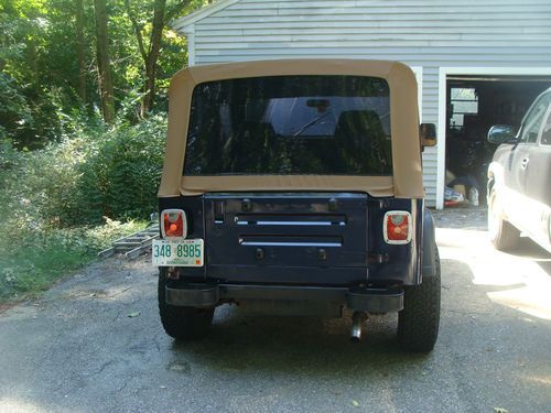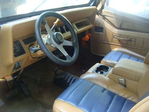 BOUGHT THIS JEEP FOR THE SUMMER AND HARDLY USED IT. 110K RUNS GREAT. MANY NEW PARTS AND UPGRADES. NEW THIS YEAR ARE THE FOLLOWING, RADIATOR TIRES AND RIMS FUEL LINES TOP ALTERNATOR FRONT BUMPER, FENDERS MUFFLER REBUILT MOTORCRAFT 2150 CARB AND HEI DISTRIBUTOR. GOT RID OF THE TROUBLESOME CARTER CARB AND COMPUTER. JEEP WAS RED AND I HATE RED SO NOW ITS TRUE BLUE. NOT A GREAT PAINT JOB BUT ITS NOT A SHOW TRUCK. INTERIOR ALL REDONE AND LOOKS SHARP. ALSO HAS SOUNDBAR. FUEL GAGE AND TEMP GAGE ARE A LITTLE FUNKY BUT DO WORK. BODY HAS NO RUST AND IS THE REASON I BOUGHT IT. THE FENDERS WERE RUSTY SO I REPLACED THEM.