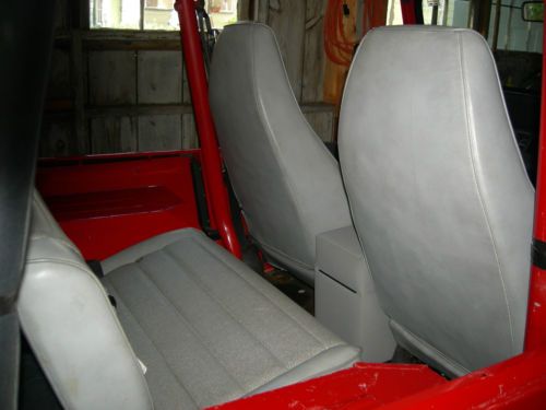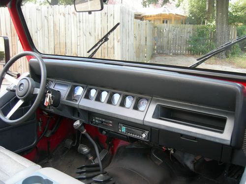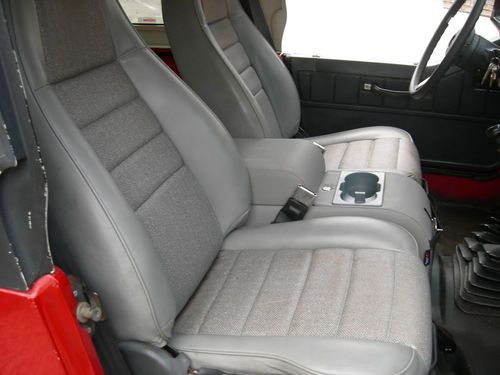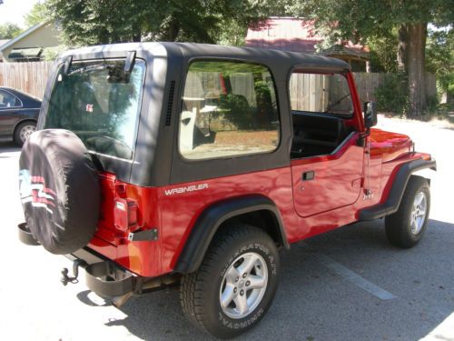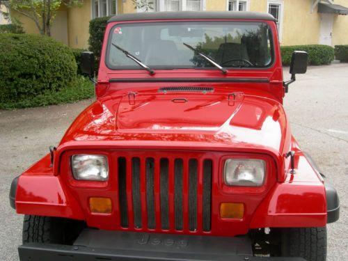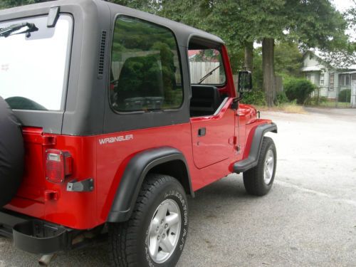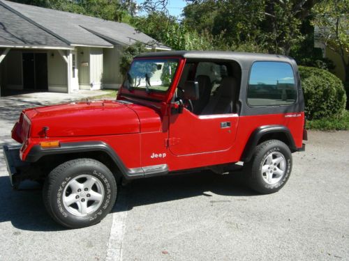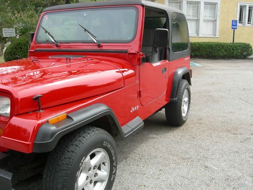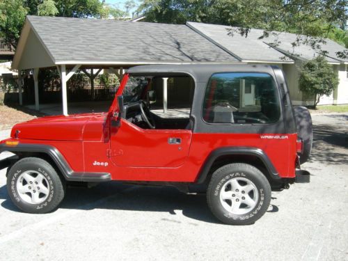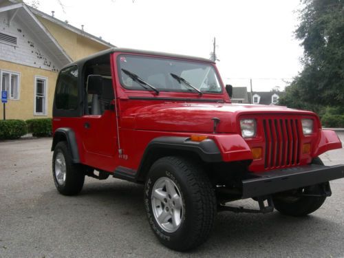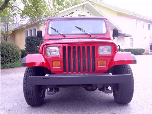 PLEASE READ MY ENTIRE AD AND VIEW ALL PHOTOS BEFORE BIDDING. Up for auction is my 1993 Jeep Wrangler. I am the fourth owner and have not had it very long. My wife absolutely hates it. She is definitely not a Jeep person. So I’ve been informed to buy myself another vehicle. I’m 69 years young and the last owner was in his seventies. It’s always been adult driven,always garaged and maintained properly. This Jeep has never been modified or molested in any way. No hill climbs, mudding or anything else that the youngsters put these Jeeps through. For a 93 model it really is a true survivor. She runs absolutelt perfect with no oil use between changes. Absolutely no drips in your garage. No funny noises from anywhere. The 2.5 litter engine puts out 130 HP and is very strong. When in 4 wheel low you could scale the Rock of Gibralta. The engine runs very cool and the oil preasure stays between 45 and 70 PSI, depending wether you are at an idle or driving. The front end seems very tight with no shimmying and she tracs perfectly. The interior was perfect when I purchased it except for a nasty split in the drivers seat. As you can see from the photos, I have had this seat reupholstered with factory material and a brand new console installed. It comes with an after market CD player and does have the speaker bar installed. It has the hard top, metal doors and real windows. ( These are a $2,500 extra when you have to buy them ). Of course all this removes in a matter of minutes for the real Jeep sport look. The four wheel drive works perfect. The transfer case is in excellent condition. She sports her original paint which you can see from the photos is in great condition. There has never been any rust any where and the vehicle has never been in an accident. No paintwork ever. It’s as straight as an arrow. It was not ordered with A/C. It has heat only and it will burn you out. All electrics are in perfect working order( lights, horn, blinkers, windshield wipers, squirters,dash lighting, guages, etc). At 146,000 miles this is very low for a 93 automobile. This Jeep is not breathing hard yet. Recent work to the jeep includes: Reupholstered front seat, new console, new radiator, all new hoses to include heater hoses, New valve cover gasket, muffler, cat. Converter, tune up, all new hard top rubber, four new axel bumps and brakes, and new rear shocks. It also sports almost new tires (see photo). The clutch slave cylinder was replaced several thousand miles ago. I do have most reciepts for work done. Also there’s a 5th five point alloy with the spare on it in the rear. I have a clear Georgia title, owners manual and two sets of keys. NADA clean book value is $7,400.00. Average book is $4,900.00. The jeep is a lot closer to clean book than average book. I am trying to get $6,295,00 for the jeep as I feel that’s a fair price. You can phone me at 706-736-3972 from 9AM tp 9PM E.S.T. if you have any other questions or want to set up a time to drive and inspect the Jeep before bidding. I will also accept reasonable offers.