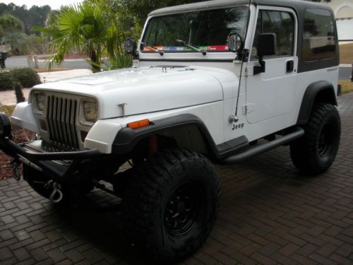 1994 JEEP WRANGLER NEW TIRES, 33X12.50X15 BFG MT'S. NEW WHEELS, NEW RANCHO SHOCKS, NEW 4 INCH ROUGH COUNTRY SUSPENSION LIFT, NEW RUGGED HITCH FRONT AND REAR BUMPERS, KC HILITES 130 WATTS AT WINDSHEILD 100 WATTS ON BUMPER. TRANSFER CASE COMPLETELY GONE THROUGH ADDED SLIP YOKE ELIMANATOR, TOM WOODS DRIVESHAFT, AND TRU TRAC LOCKER IN REAR. SWINGAWAY REAR TIRE CARRIER, NEW CAT AND EXHAUST, NEW CB RADIO. COMES WITH BAKINI TOP, HOLD HANDLES ACCESORIE LED INTERIOR LIGHT NEW PADDING ON ALL ROLL BARS FAIRLY NEW CARPET AND NEW MATS. SWAY BAR DISCONNECTS, BRAIDED BRAKE LINES NEW CALIBERS, ETC..... IT RUNS LIKE NEW DRIVES LIKE NEW AUTOMATIC WORKS GREAT HAS LOCKUP GREAT OFFROAD YES ITS BEEN ROCK CRAWLING BUT NEVER ABUSED. NOT A MUD BUGGY EVERYTHING TIGHT EVERYTHING WORKS THE BEST 94 YJ I KNOW OF READY TO OFFROAD. CALL BRANTLEY 9108400655.