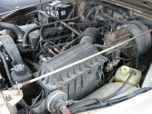 excellent candidate for a restoration, or for the rare, hard to find parts! Factory options include the desirable Champagne Light Metallic finish, Spice soft top (replaced with a Bestop in 2008), Hunter Green interior with Spice accents (original seats are functional but sun damaged and torn in places; all gauges work except the fuel gauge; center console is functional but has a crack in the cup holder; floor carpet removed), rare factory air