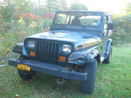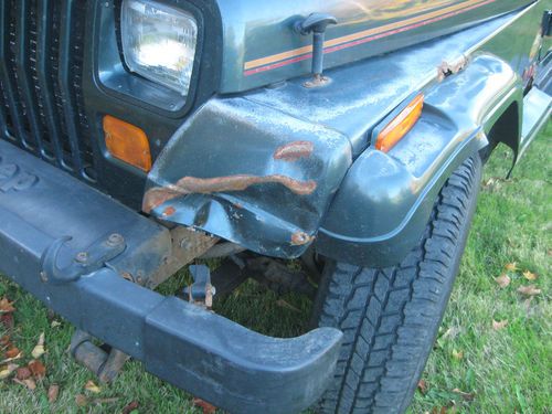 1994 Jeep Wrangler Sahara 4 x 4. Runs Well. Low Miles. Interior in very good condition. Four Wheel Drive. Clean. Includes hard top and soft top. Full doors. Frame has some rust through and is not sound. Back end damage caused by a slow role into tree breaking back hard top window. Driver's side front fender dented. Cracked windshield. Driver door interior latch missing.