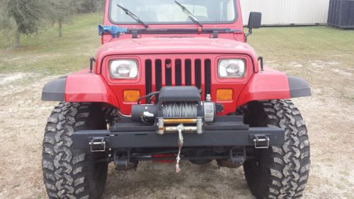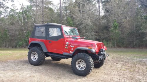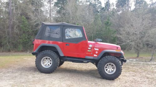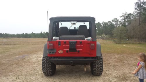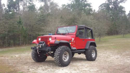 Ebay has insisted that we list as SALVAGE TITLE because the previous owner in SC wouldn't allow the insurance company to total it over a fender bender. Absolutely zero frame damage. I bought it with the damage, which was the drivers door and rocker needing to be replaced. I have the previous owner hunting down pictures of the damage so email me if you need them. The fact that you're looking at this listing means it's a sad day. This a great vehicle which has provided not only daily transportation but also great memorable recreational times with our family. The two words I would use for this vehicle is FUN and RELIABLE! Here's the nuts and bolts and I'm sure I may miss a few things. 4" ProComp Suspension Lift, 3" Body Lift, 36 " Super Swamper Irok Tires on aluminum ProComp Wheels, 10,000 lb. Wench, 4:11 Gears allow it to run 70 mph down the road, Side Steps/Rocker Guards, has a Quick Detachable Tow Bar with Hauling Plug hard mounted to body, has a 2' X 4' Carry Tray for Coolers,etc. that slides into the Reese Hitch, "the tray is not in picture but does come with the Jeep". The Jeep also has a Best Top, the top and all windows are in excellent condition with no tears or broken zippers. Also comes with 2 additional tops,one half Bimini (color is camel) the other is a full Bimini ( color black). There is a High Lift Farm Jack mounted on the hood. Has a Pioneer CD Player with Detachable Face, Polk Audio Waterproof Speakers in dash, Klipsch Waterproof Speakers mounted in back seat for great sound at 70 mph or for the whole beach to listen to.There is a Center Console and Cobra 25 LTD.CB Radio which is not pictured but is also part of this package. Previous owner said motor was rebuilt in 2011. We have completely rebuilt the front axle ( seals, bearings,etc.). I'm probably leaving something out because there is to much to list, but if you are looking at the picture you probably see the motorcycle in the back and the wife told me if I bought the motorcycle the Jeep would have to go. This is a steal with tons of extras! The winning bidder of this Jeep will be happy with their purchase. The buyer is responsible for vehicle pickup or shipping. Seller will deliver vehicle up to 250 mile radius from Jacksonville, FL Good Luck and Happy Bidding!