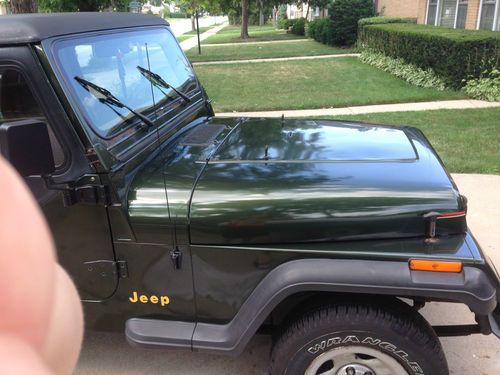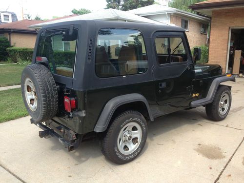 1995 Jeep Wrangler Rio Grande 4x4 that is very clean for its age. It runs great and the transmission shifts smoothly. Oil changed every 3,000 miles or less. Has one rust spot on the front driver side fender(see picture) and surface rust on the bottom of the windshield(see picture). There is one dent on the back passenger corner. The inside floor of the jeep was rhino lined underneath the carpet by the previous owner(in pictures). The floors are solid and so is the rest of the body. The seats are very clean. The tires have 2,200 miles on them with tons of life left. The trailer hitch is wired up and works. I bought the Jeep in 2008 from a friend and have had it since then. The only problem I had with the jeep is that the starter went out on it once. I've been getting 20 highway and 16 city mpg. The jeep has never been lifted or had big tires on it to wear the drive train down. The 4 wheel drive works great in low and high gears. If you have any questions please ask. If I remember anything else I will put it up.