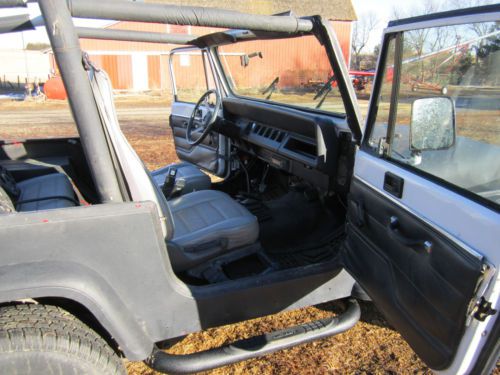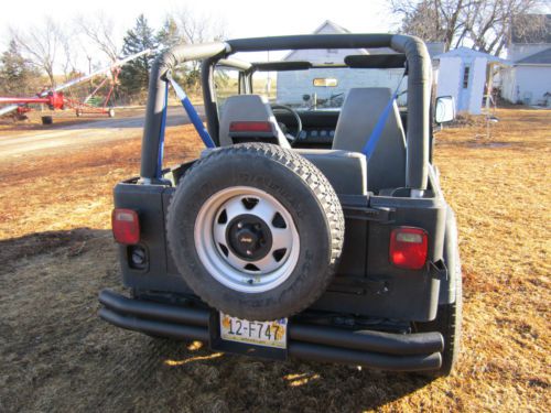 For sale is my 1995 Jeep Wrangler 4x4 with a 5 speed manual and the proven 4.0 liter engine. It has a low 54k miles on it and will go through about anything as you Jeep people know. I have owned it for a little over 2 years and never had any problems with it or done anything to it. The whole body of the Jeep is sprayed with black undercoating, very durable but not very pretty, but hey we're going off roading right? The body has no rust holes or dents either. It has matching seats that for the year are really good shape. It has a very nice Pioneer stereo with speakers sitting on the back seat, they can be put on the floor or wherever, sounds great. It sits on a set of 4 wild country tires with over 80% tread remaining. The Jeep runs and drives great. It shifts as it should and the 4x4 works great. The only thing that probably detracts from this Jeep is that it has no tops, other than that it is ready to do what you need it to do. If you have any questions please ask as I will answer right away. Again No Reserve, check my feedback, and you bid you own it. Thanks for looking |
