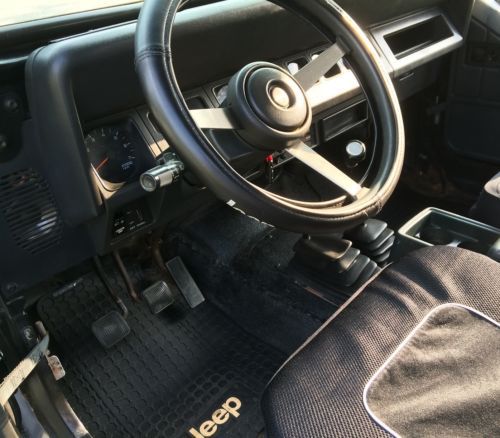 On a whim, my wife and I recently purchased this weekender's "toy" but unfortunately some important family matters have taken priority and so we're putting our dreams of enjoying the "Jeep life" on hold for awhile. That said, while we must wait, you don't have to! When you win this auction, here's what you'll be getting into... Exterior: The front grill and fenders have been replaced with the much cooler looking round head lights of a Jeep CJ7. As with all 20 year old Jeeps, it has some minor rust and body issues around the edges but she still looks respectable. I have a set of diamond plate side rocker panels on the way that I will include but you will need to install them to cover up the imperfections found under the doors. Interior: Very clean and comes with the original rear bench seat along with all zip windows and soft door toppers (not shown). The back rear/tailgate window has a rip that was once taped - we never fixed or replaced it as we enjoyed the top down most of the time. The Jeep front seat covers, Jeep steering wheel cover and Jeep floor mats seen in the pictures are included too. I replaced the old dash lights with white LED's so at night it looks super fresh and clean. Lastly, the entire tub floor from front to back has been been treated with waterproof bedliner - just hose her down for an easy cleanup! Engine and other mechanical aspects: To be clear, I am NOT a mechanic but to me the 5 speed manual transmission runs and shifts fine. The battery is about a year old and I replaced all of the fuses. Underneath, she's loud and definitely needs a new muffler. She's also a pretty rough ride and could probably use a set of shocks. The rear tires are newer and have plenty of tread while the front tires are starting to show some age but appear to still have enough tread depth to get through at least one more Chicagoland winter. Payment & Delivery: Buyer is responsible for vehicle pick-up or shipping