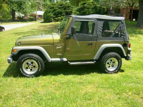 1997 JEEP WRANGLER SPORT - 4.0 ,5 SPEED MANUAL,4X4,A/C,LOW MILES,NEW TOP,ALL STOCK,CITRON PEARL,FACTORY RUNNING BOARDS,30 X 9.50 15R GOODRICH T/A's TIRES, SMALL TEAR IN DRIVERS SEAT,RUNS EXCELLENT